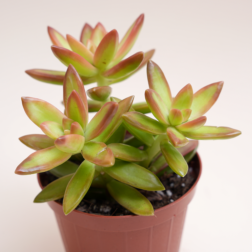 Canarie, e da questo evinciamo l’adattabilità e l’estrema facilità di coltivazione di questa variopinta succulenta. I suoi fusti sono corti (soprattutto se cresce al sole) e le sue foglie hanno forma lanceolata e sono di colore cangiante ma di solito sul verde chiaro, i margini delle foglie sono di un colore rossiccio-arancio ma anche questo cambia in base alla temperatura, all’esposizione e al periodo dell’anno. La